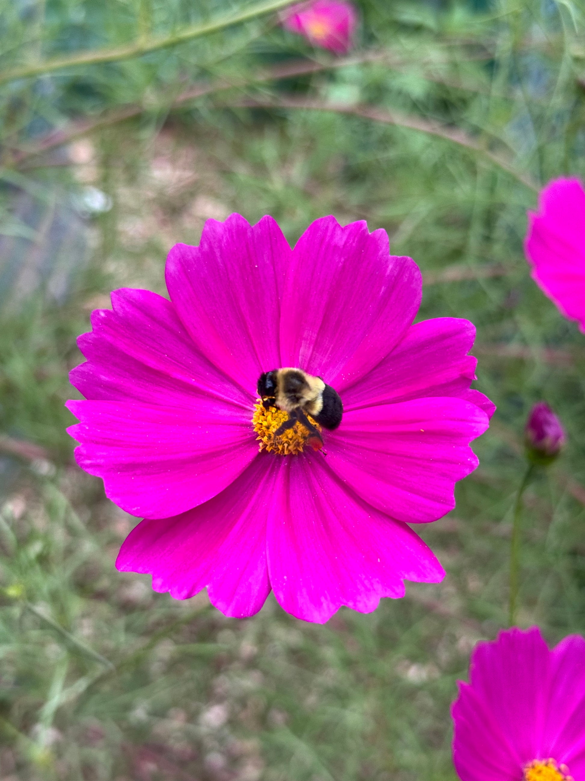 Cosmos pairs beautifully with vegetables and herbs that benefit from pollinator activity, such as tomatoes, peppers, and basil. Their airy canopy attracts bees and predatory insects that help reduce pests. Plant around garden edges or near crops to encourage healthy growth and natural balance.